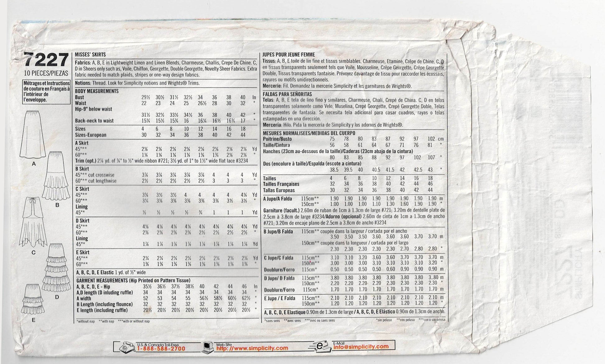 Simplicity 7227 sewing pattern, dated 2002, now out of print.