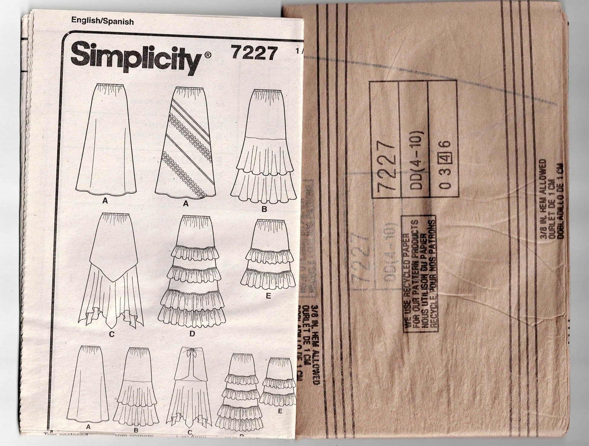 Simplicity 7227 Womens Plain or Ruffled Elastic Waist Skirts Out Of Print Sewing Pattern Size 4 - 10 UNCUT Factory Folded