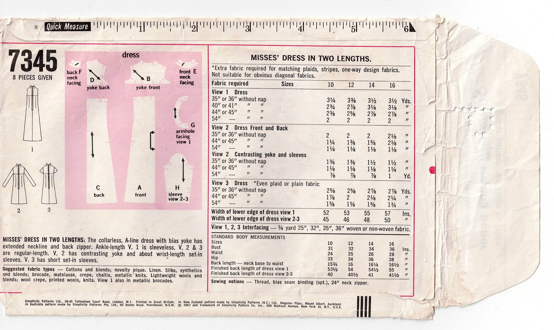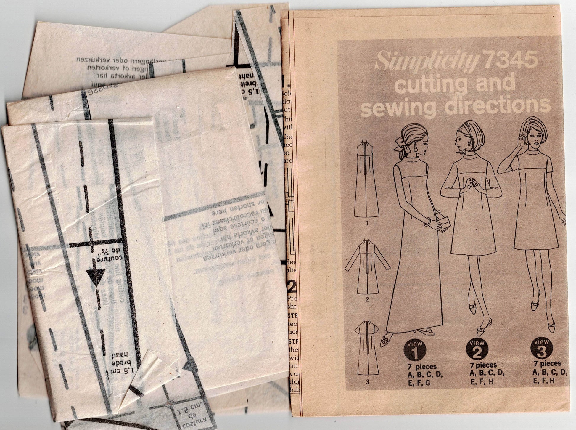 Simplicity 7345 vintage sewing pattern, dated 1967.