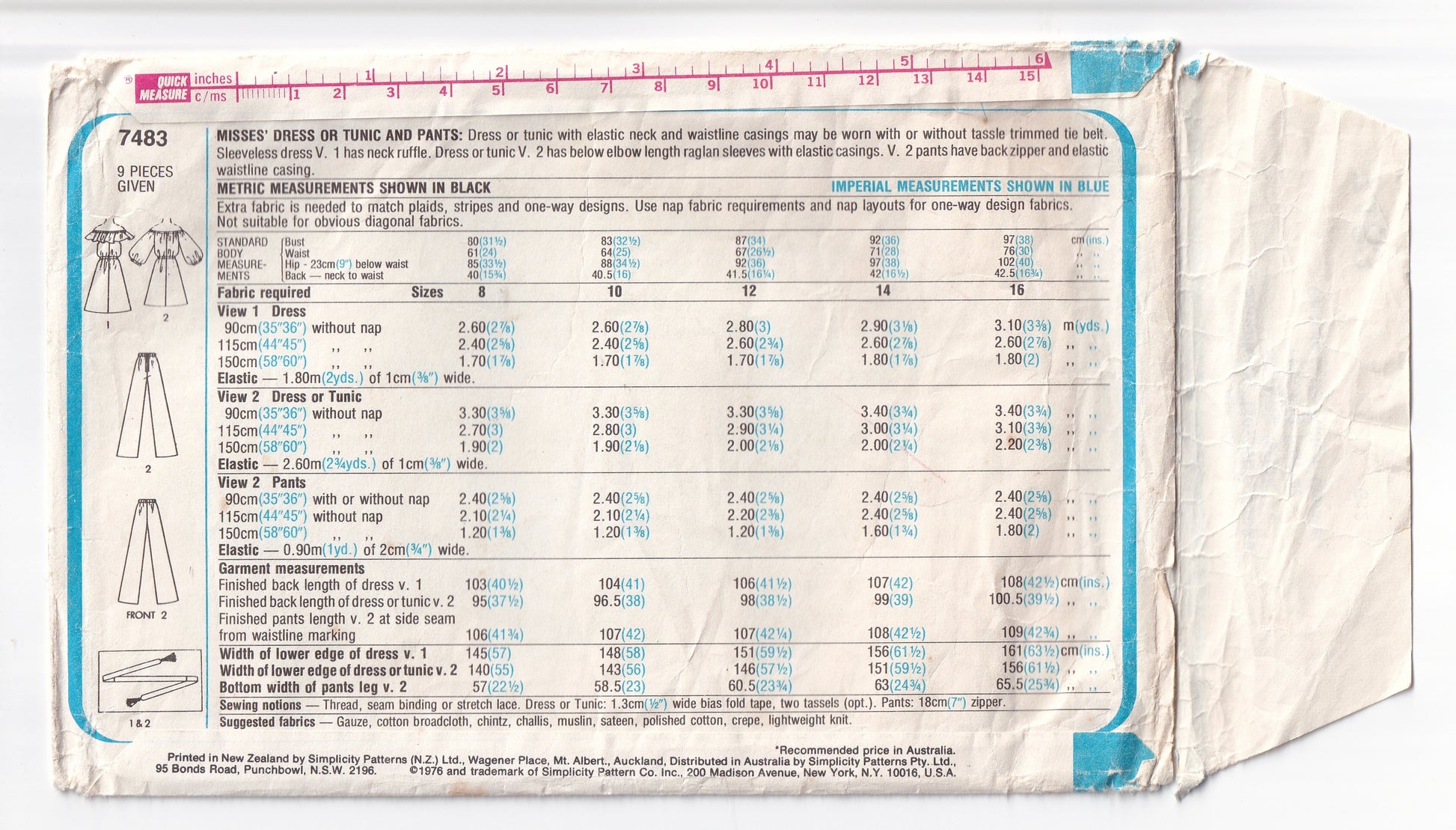 Simplicity 7483 vintage sewing pattern, dated 1976.
