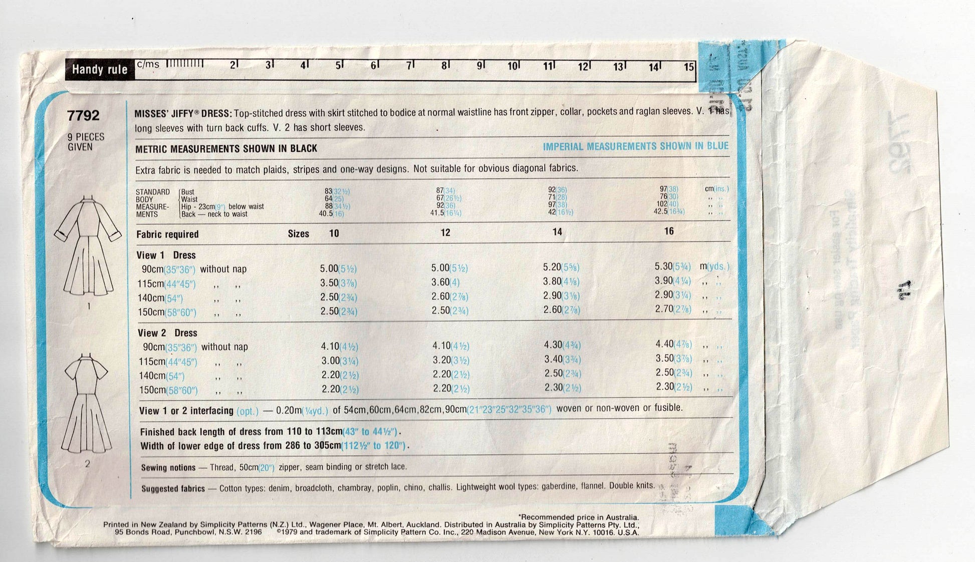 Simplicity 7792 vintage sewing pattern, dated 1979.