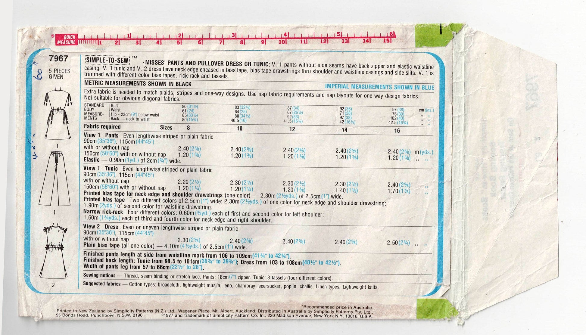 Simplicity 7967 vintage sewing pattern, dated 1977.