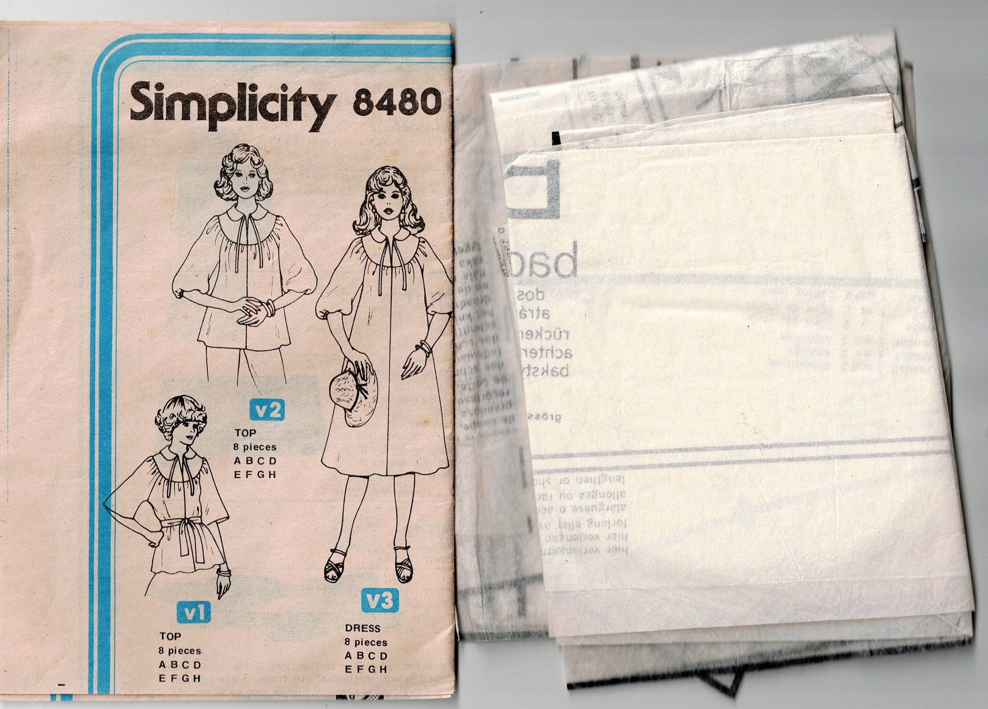 Simplicity 8480 Womens JIFFY PLUS Round Yoked Smock Dress & Top 1970s Vintage Sewing Pattern Size 10 Bust 32.5 inches