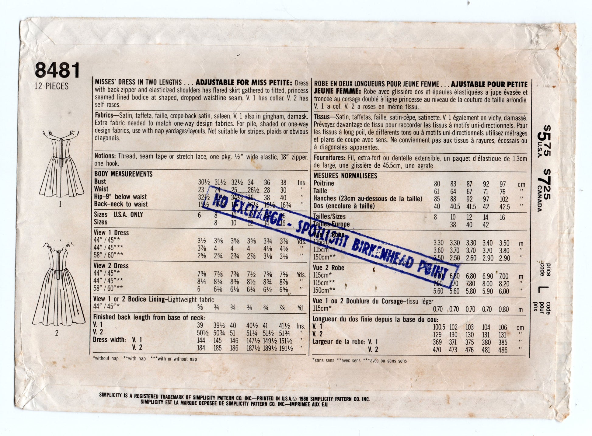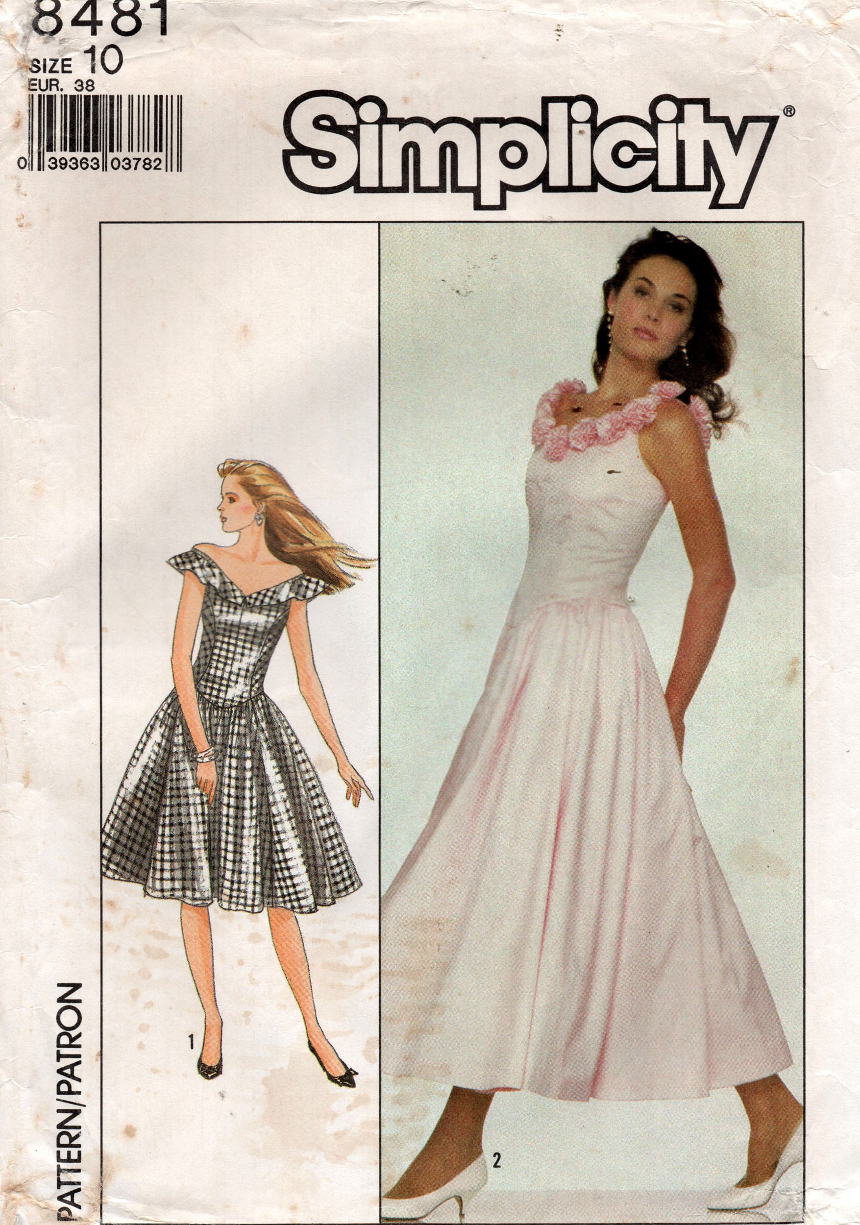 Simplicity 8481 Womens Full Skirt Evening Dress 1980s Vintage Sewing Pattern Size 10 bust 32.5 Inches