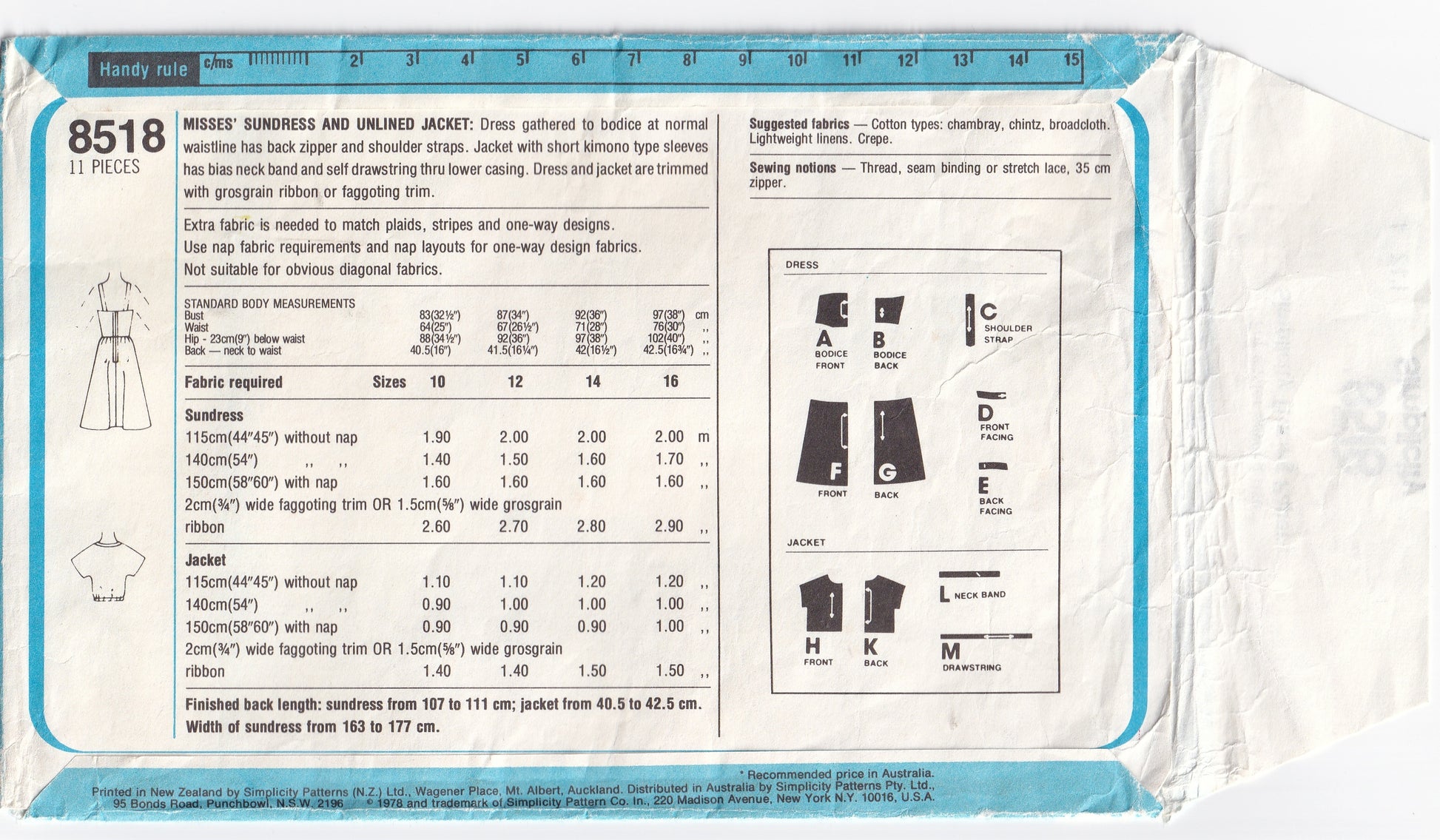 Simplicity 8518 vintage sewing pattern; ©1978.