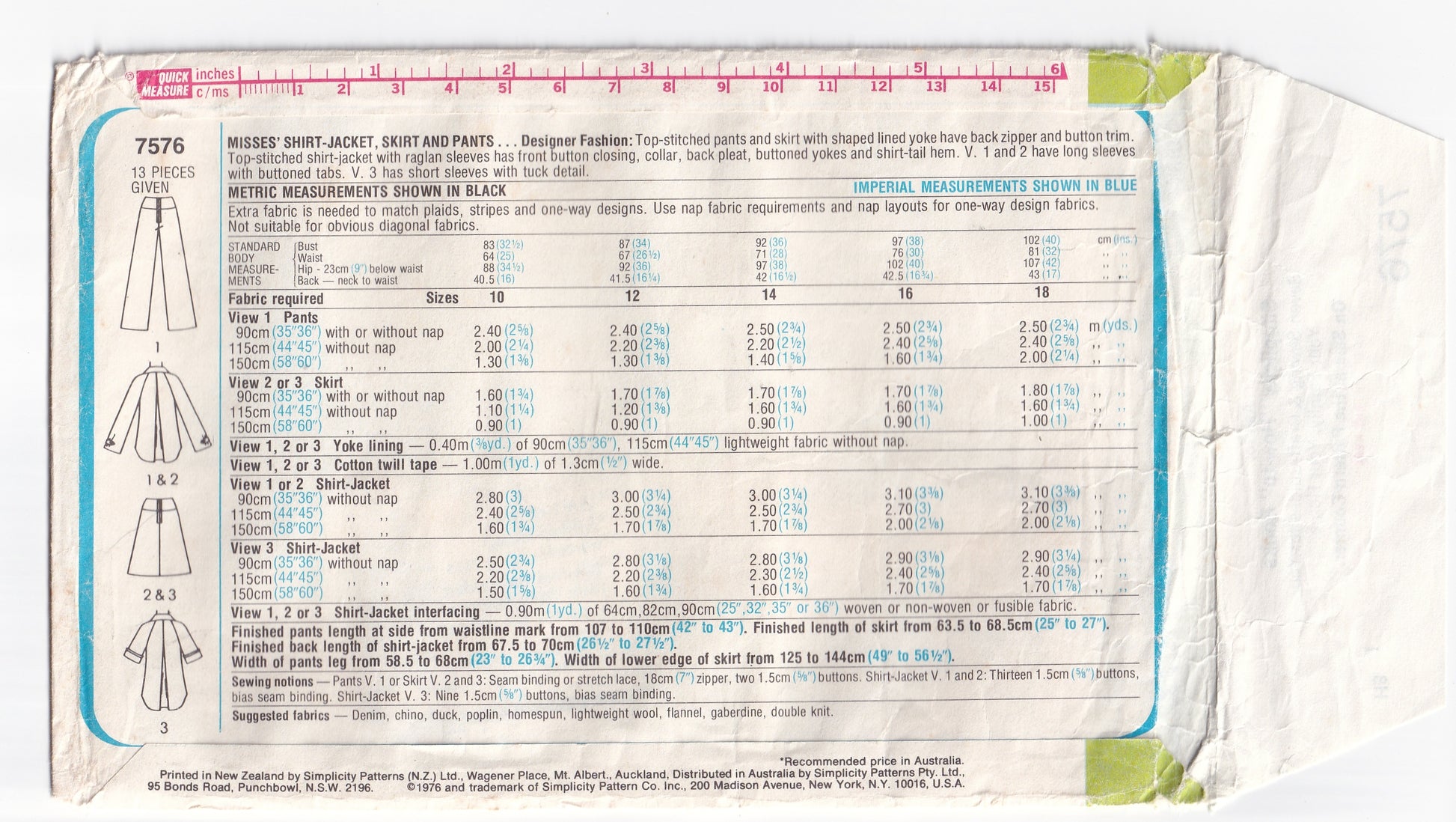 Simplicity 7576 vintage paper sewing pattern; ©1976.