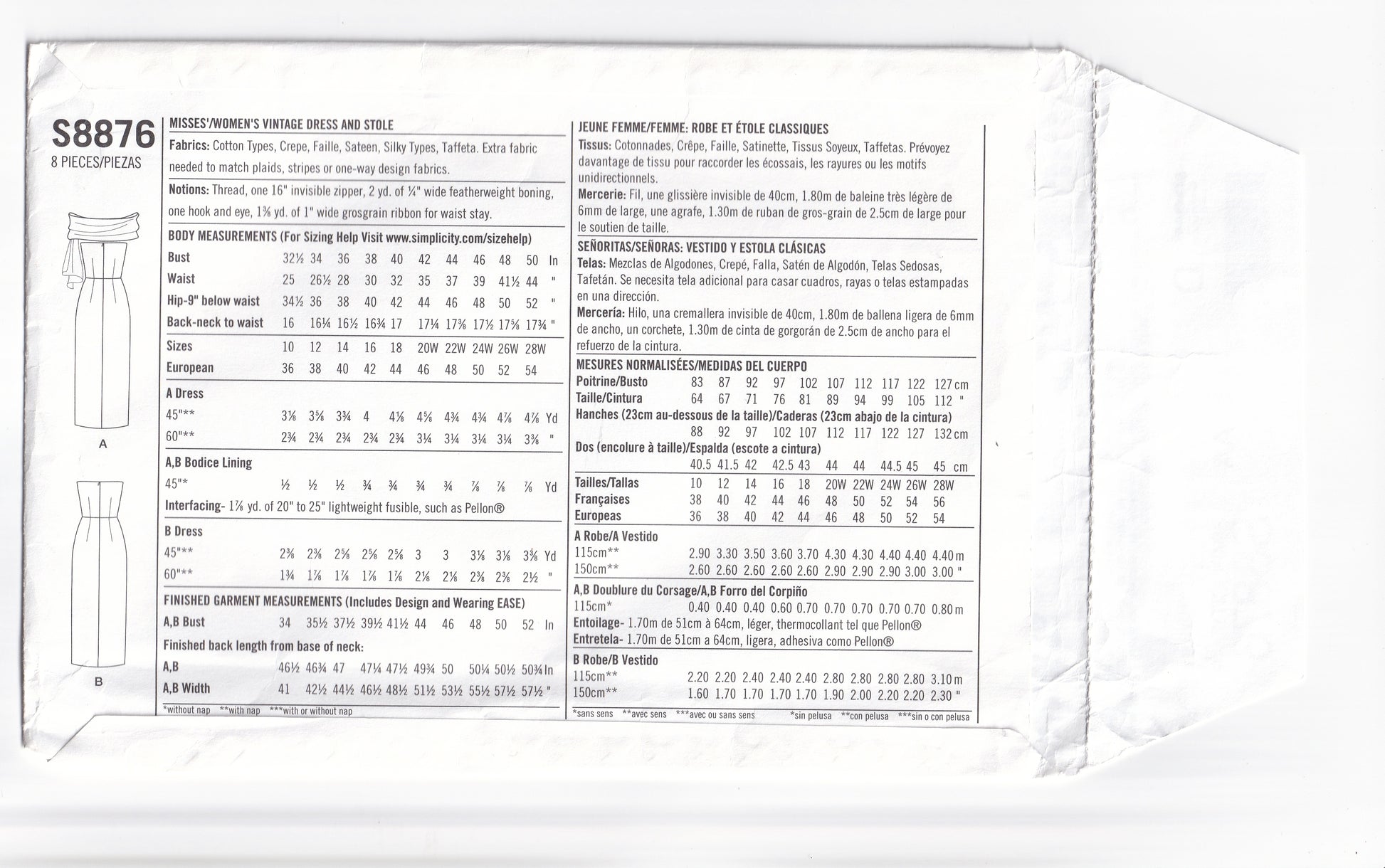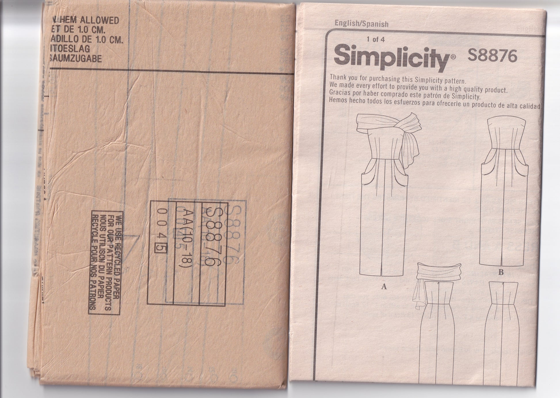 Simplicity 8876 reissued 1940s paper sewing pattern.