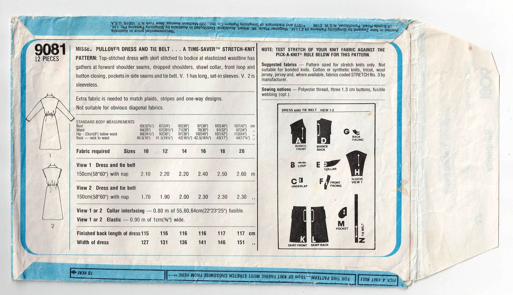 Simplicity 9081 vintage sewing pattern, dated 1979.