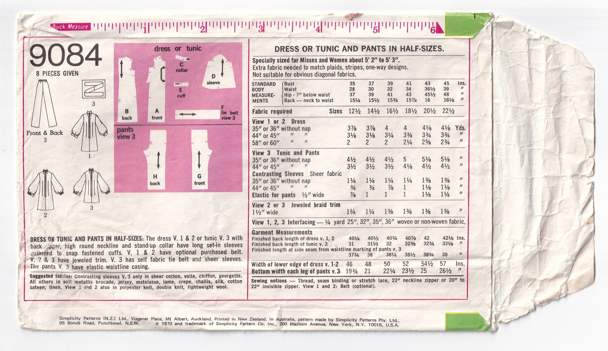 Simplicity 9084 vintage sewing pattern, dated 1972.