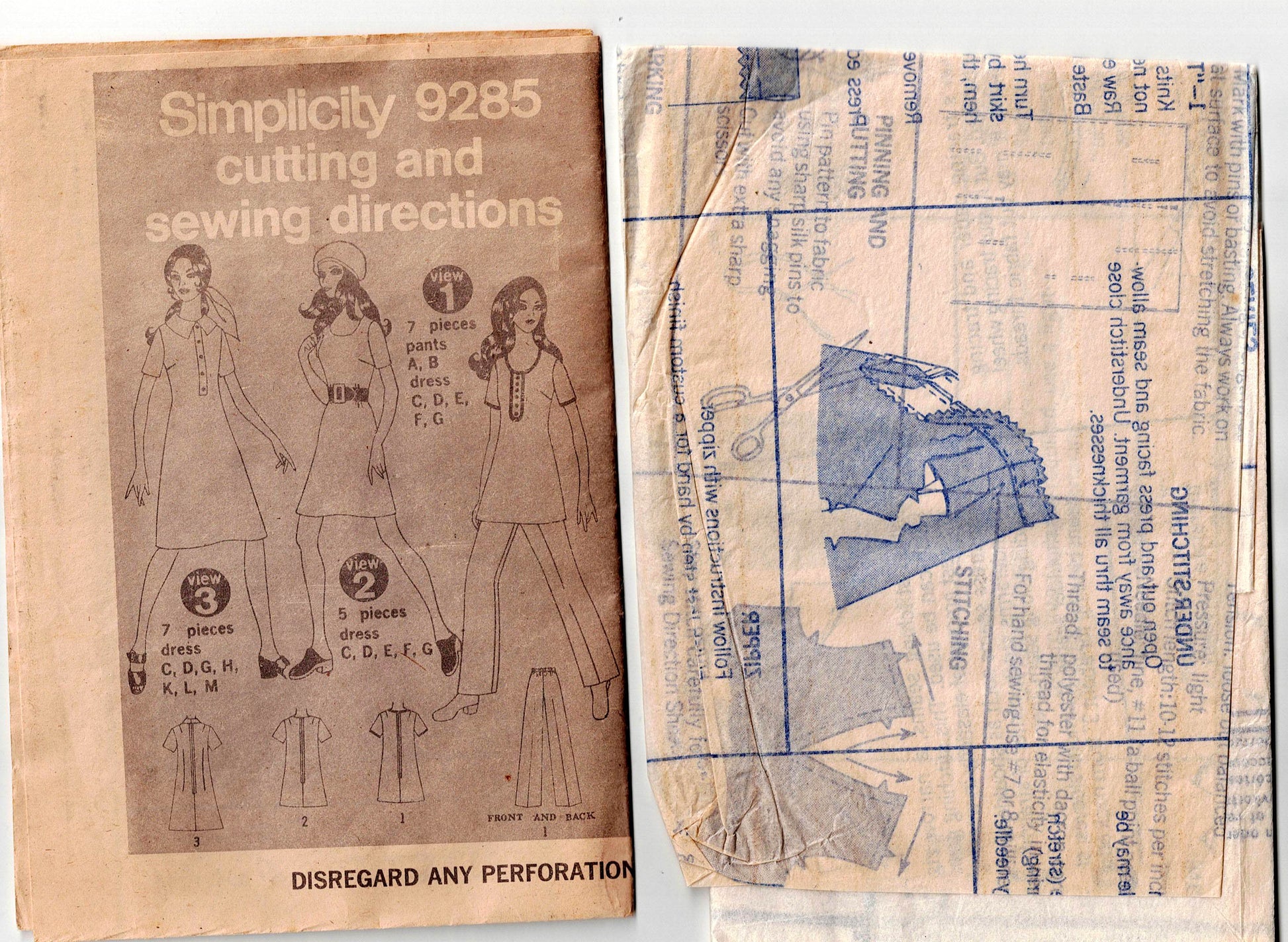 Simplicity 9285 vintage sewing pattern; ©1971.
