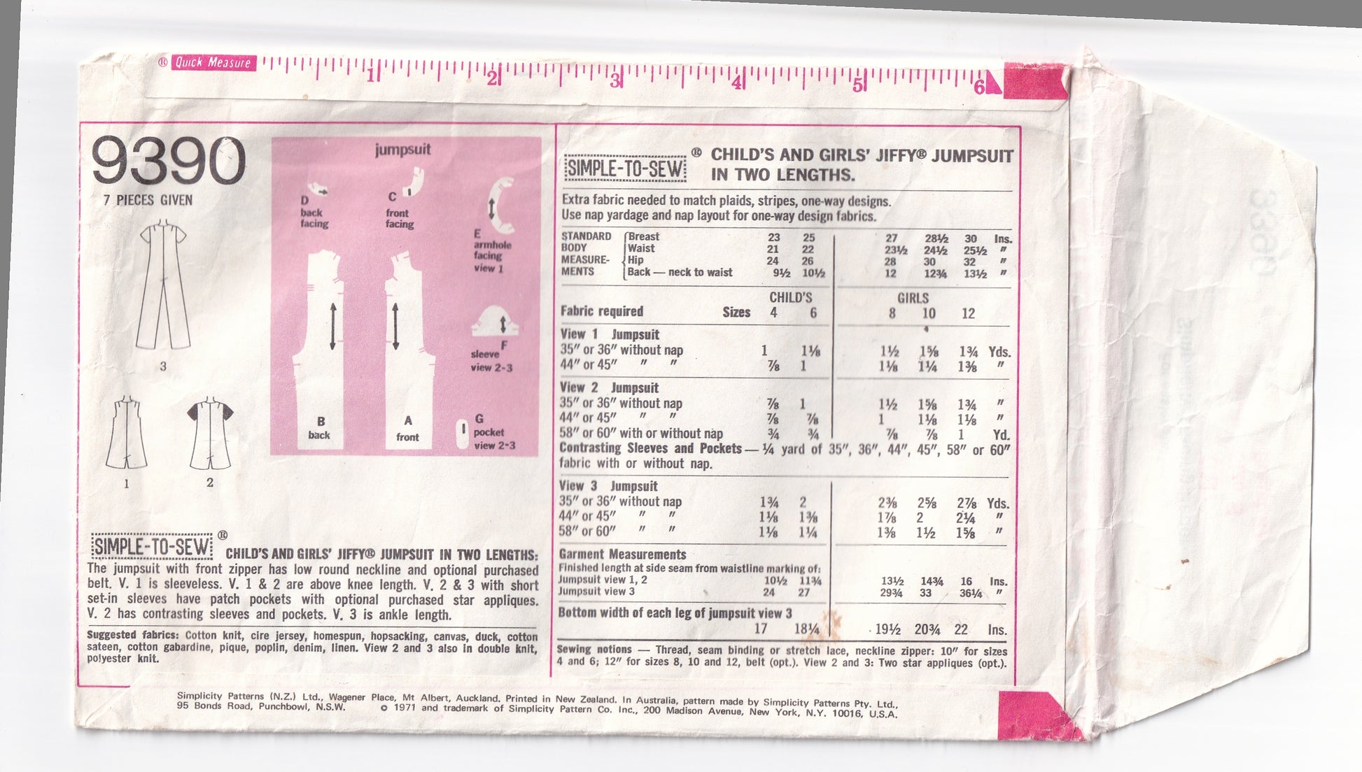 Simplicity 9390 vintage sewing pattern; ©1971.