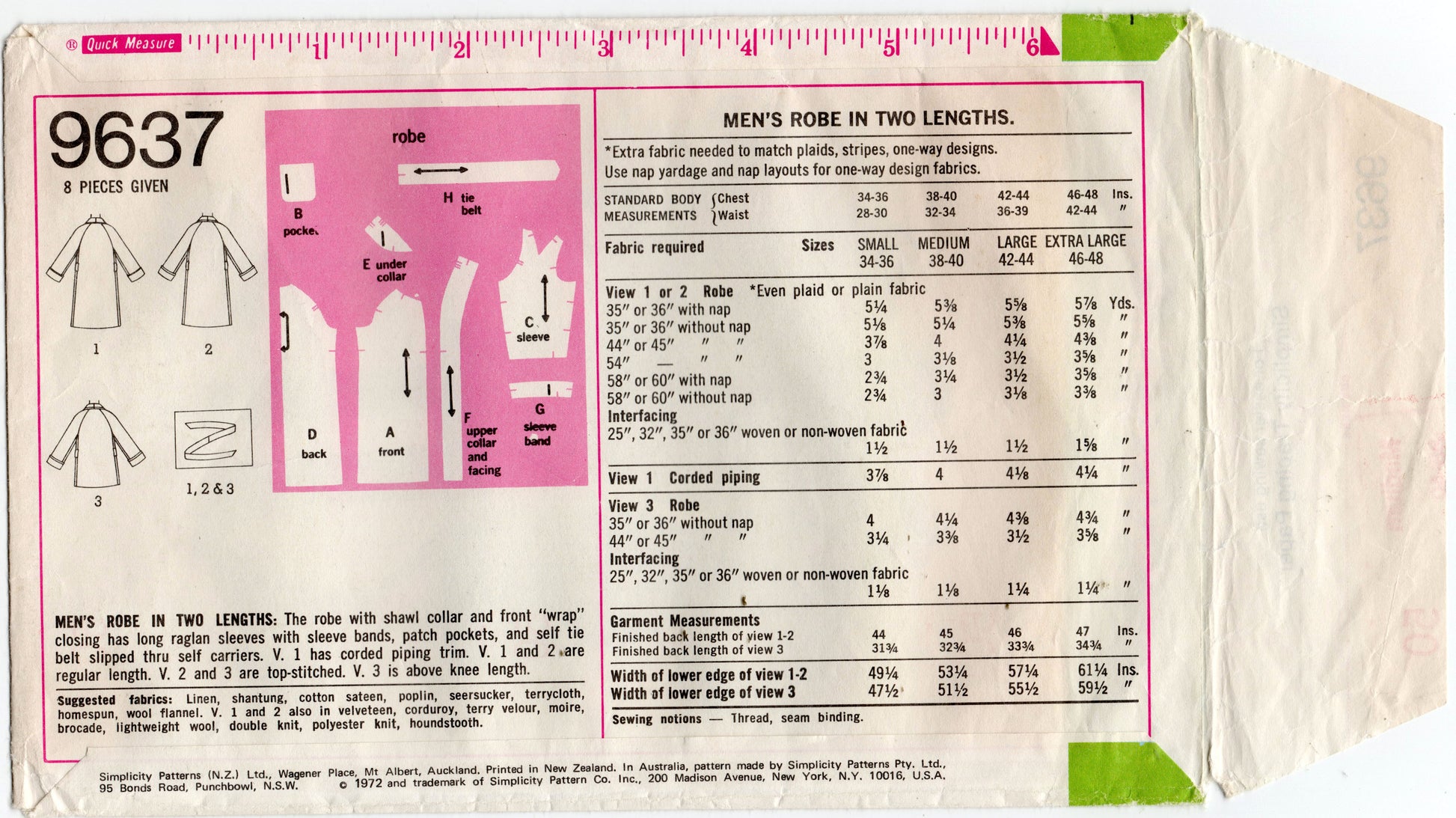 Simplicity 9637 Mens Kimono Style Wrap Robe 1970s Vintage Sewing Pattern Size MEDIUM Chest 38 - 40 inches
