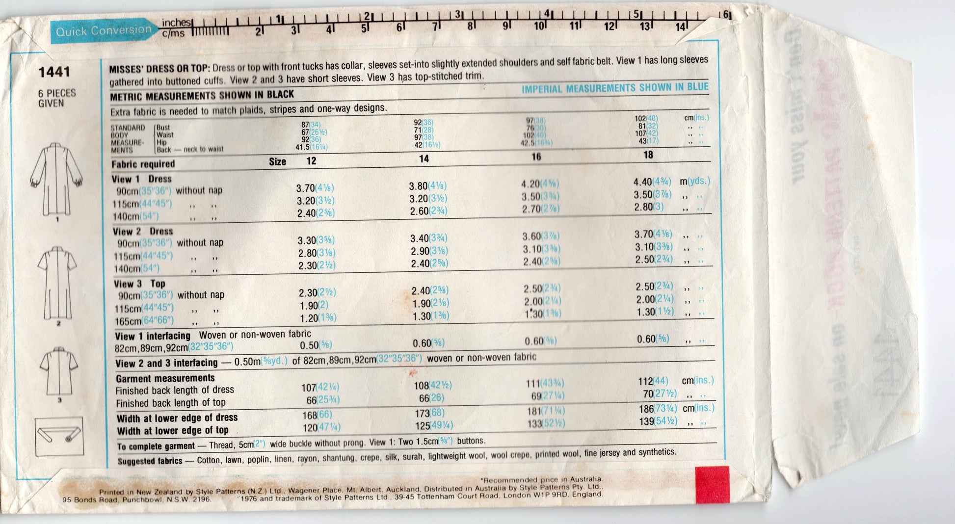 Style 1441 vintage sewing pattern, dated 1976.