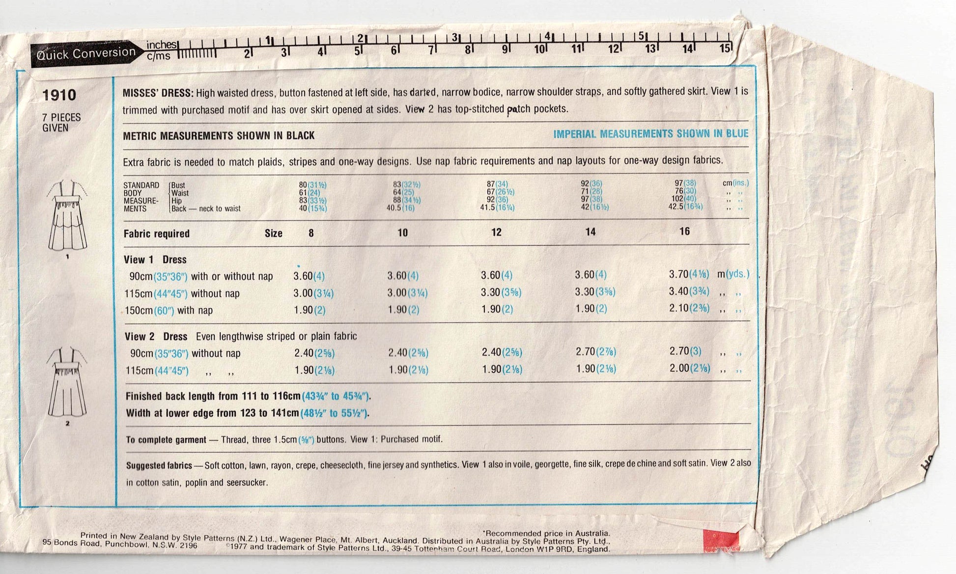 Style 1910 Womens High Waisted Sundress 1970s Vintage Sewing Pattern Size 8 Bust 31.5 Inches