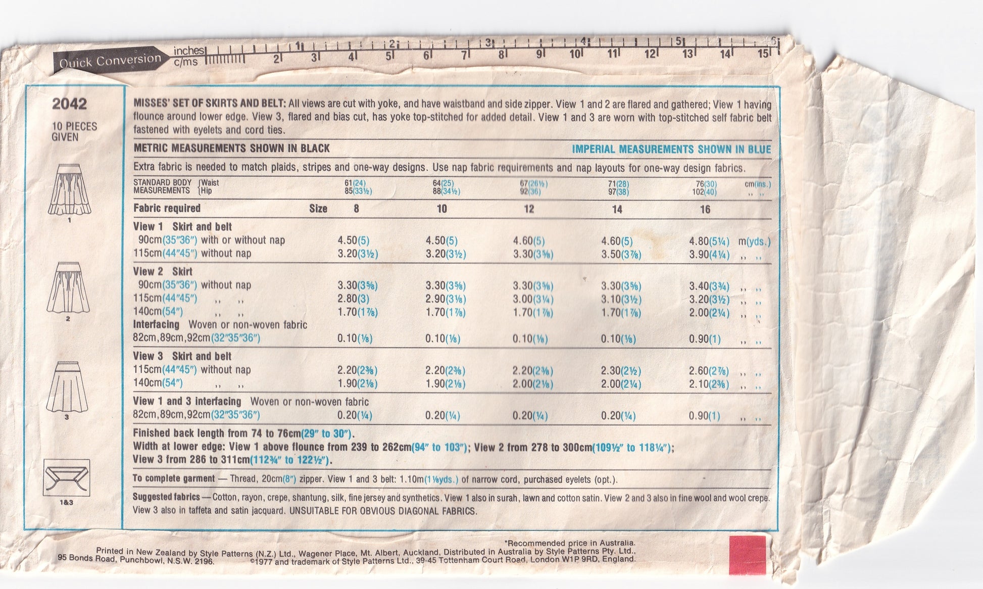 Style 2042 vintage paper sewing pattern, dated 1977.