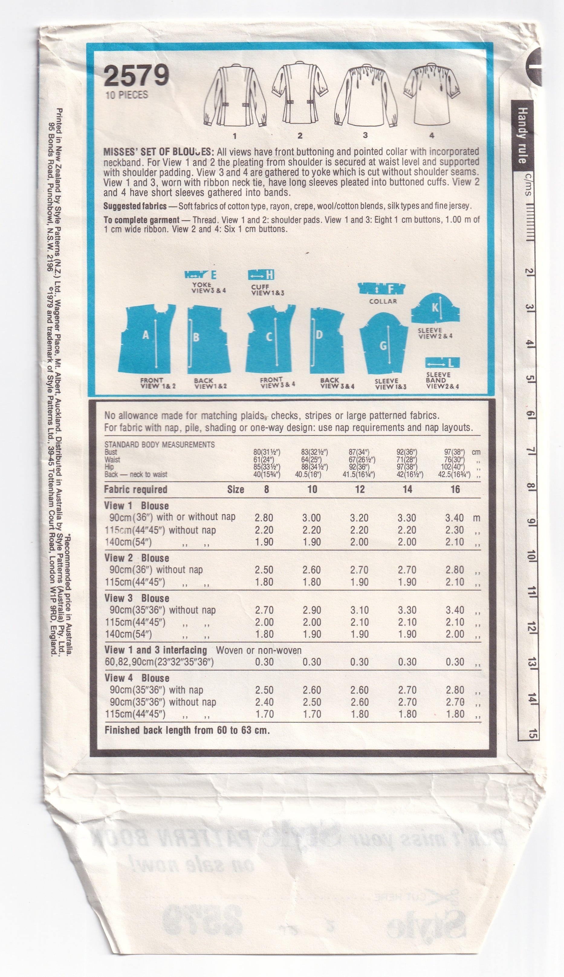 Style 2579 vintage paper sewing pattern, dated 1979.