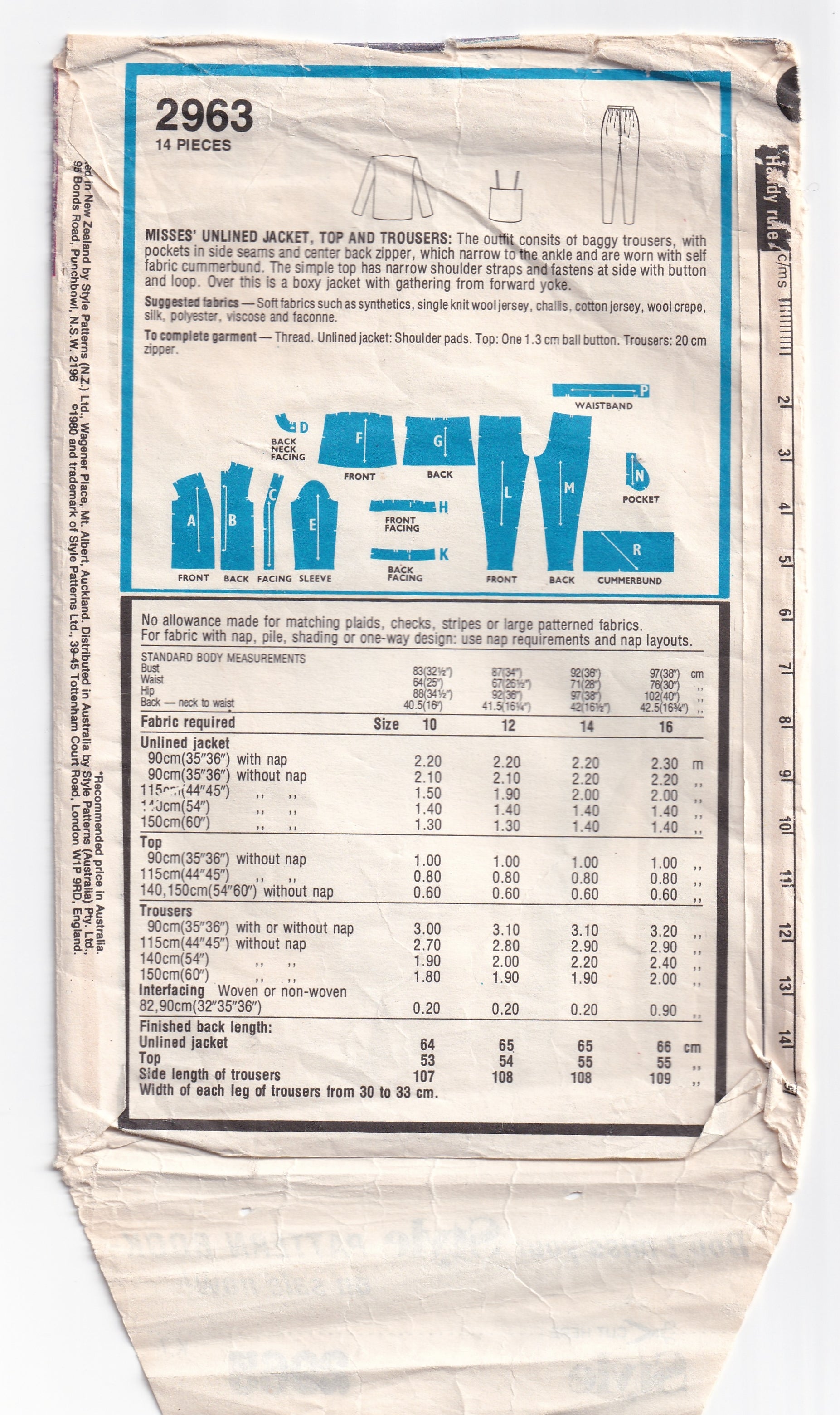 Style 2963 Womens Evening Jacket Camisole Top & Pants 1980s Vintage Sewing Pattern Size 12 Bust 34 inches