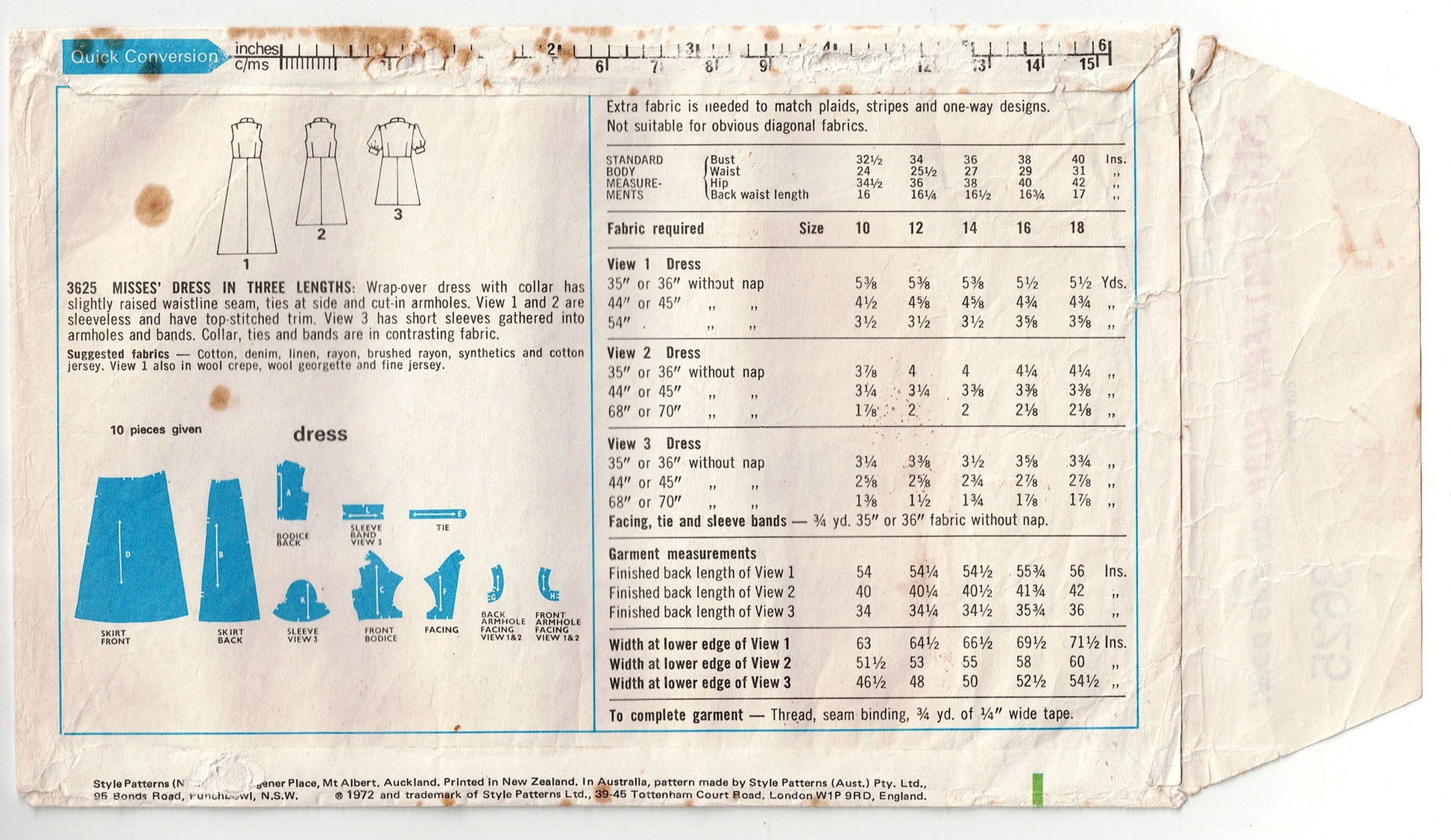 Style 3625 Womens High Waisted Wrap Dress 1970s Vintage Sewing Pattern Size 14 Bust 36 Inches