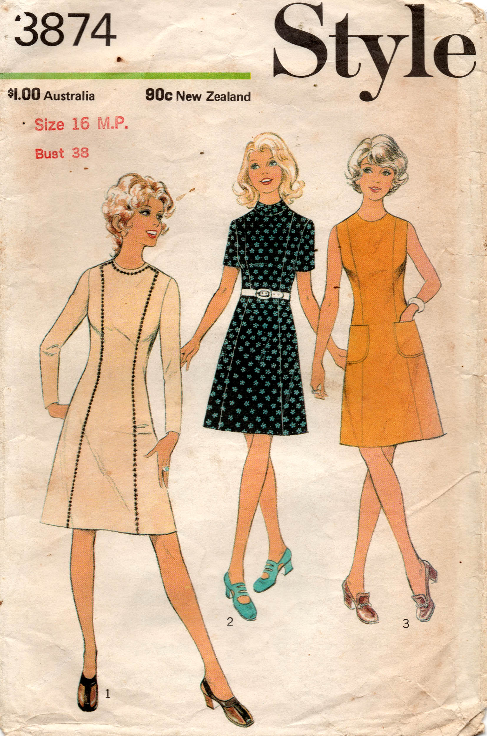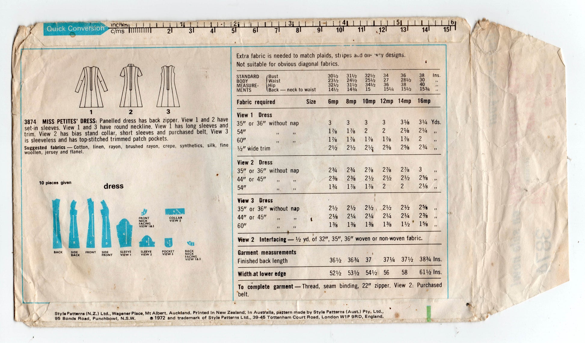 Style 3874 Misses Petite Princess Dress 1970s Vintage Sewing Pattern Size 16 MP Bust 38 inches