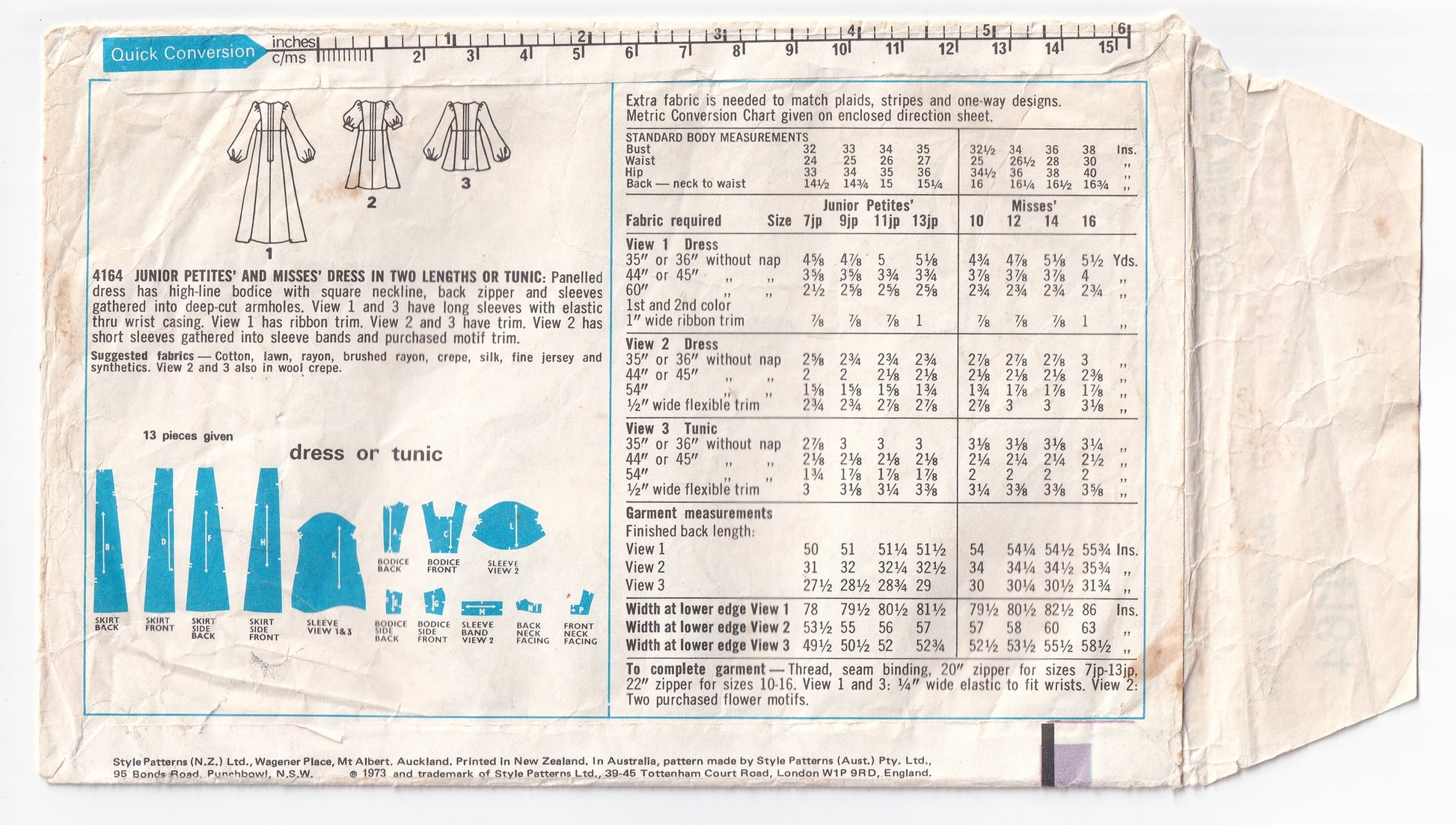 Style 4164 vintage sewing pattern, dated 1973.
