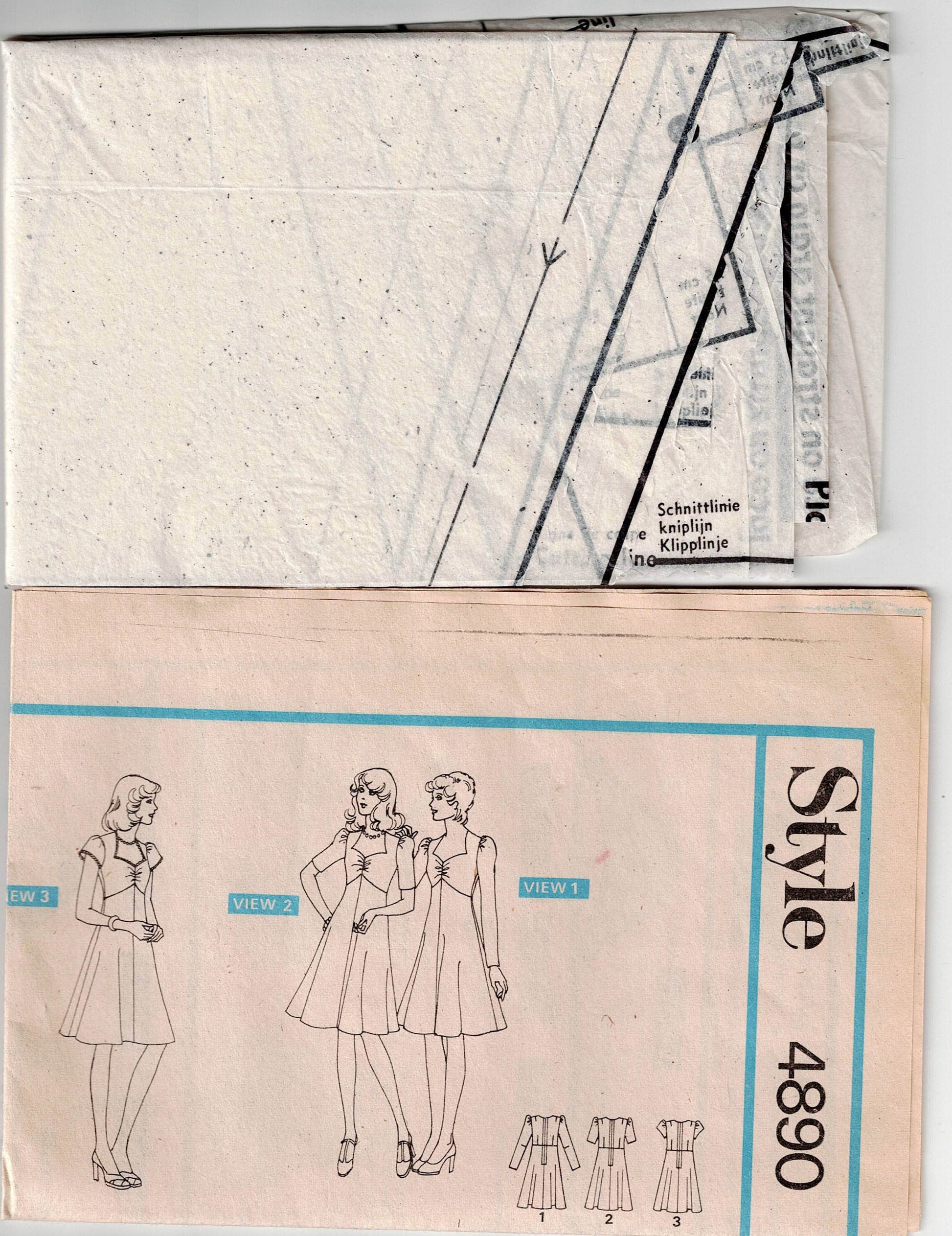 Style 4890 Womens High Waisted Puffy Sleeved Dress 1970s Vintage Sewing Pattern Size 12 Bust 34 inches