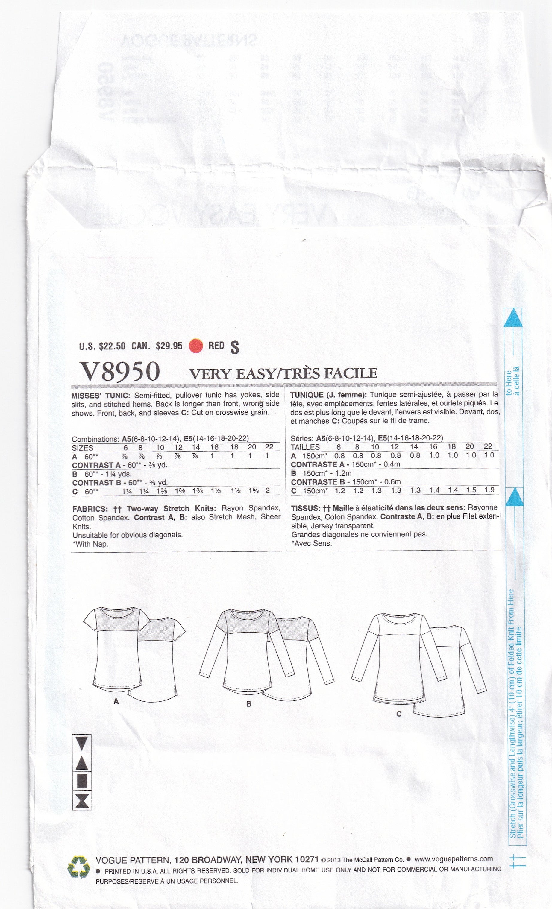 Very Easy Vogue 8950 out of print paper sewing pattern, dated 2014.