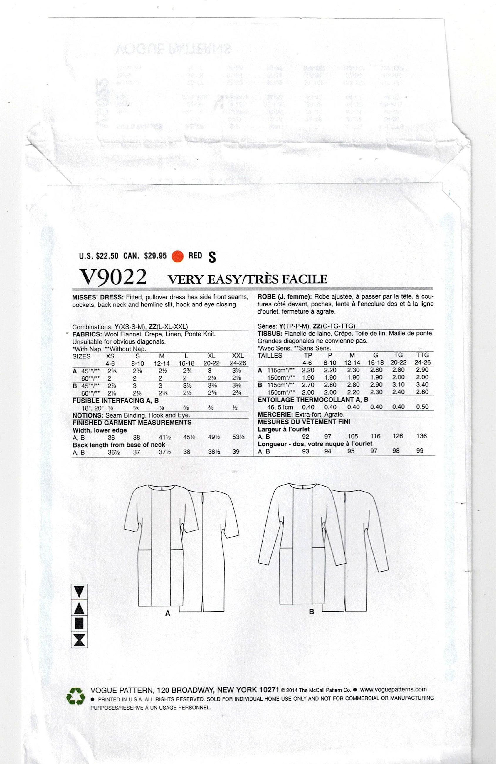 Vogue V9022 sewing pattern, dated 2014, now out of print.