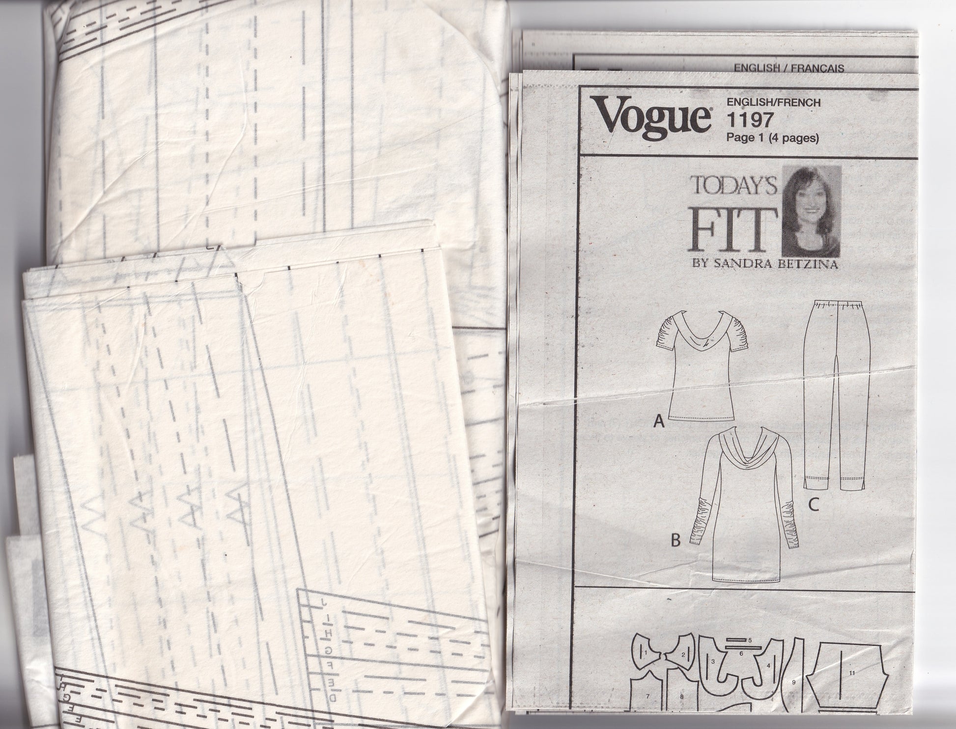 Vogue 1197 Today's Fit SANDRA BETZINA Womens Cowl Neck Stretch Knit Top Tunic & Pants Out Of Print Paper Sewing Pattern Bust 32 - 55 inches UNCUT Factory Folded