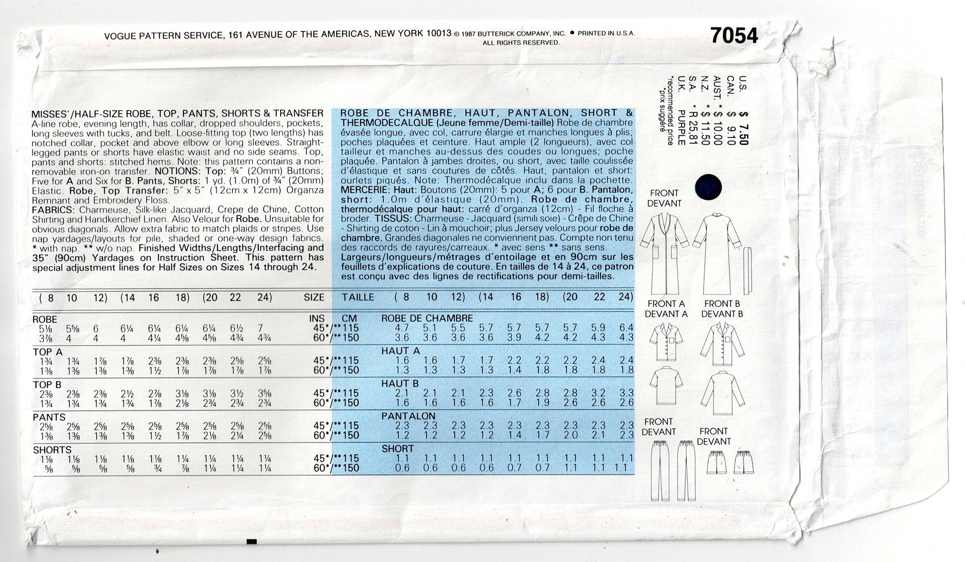 Vogue 7054 vintage sewing pattern, dated 1987.