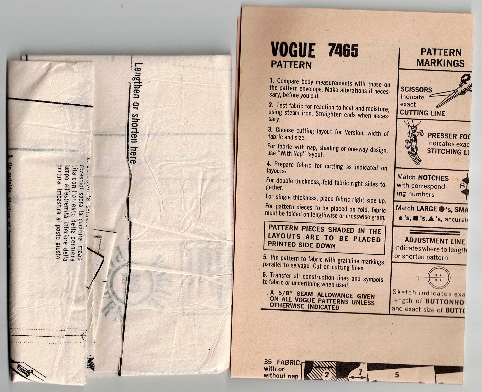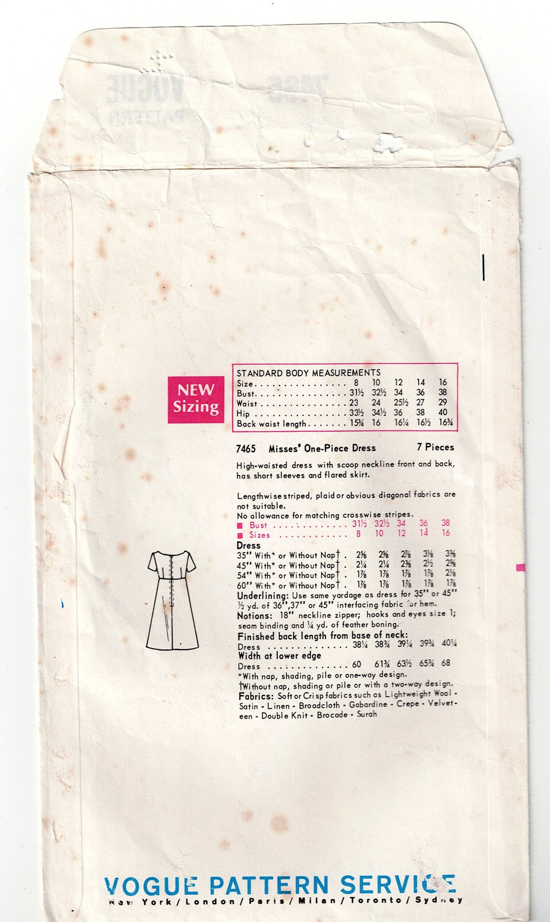 Vogue 7465 vintage sewing pattern, dated 1968.Misses' One-Piece Dress