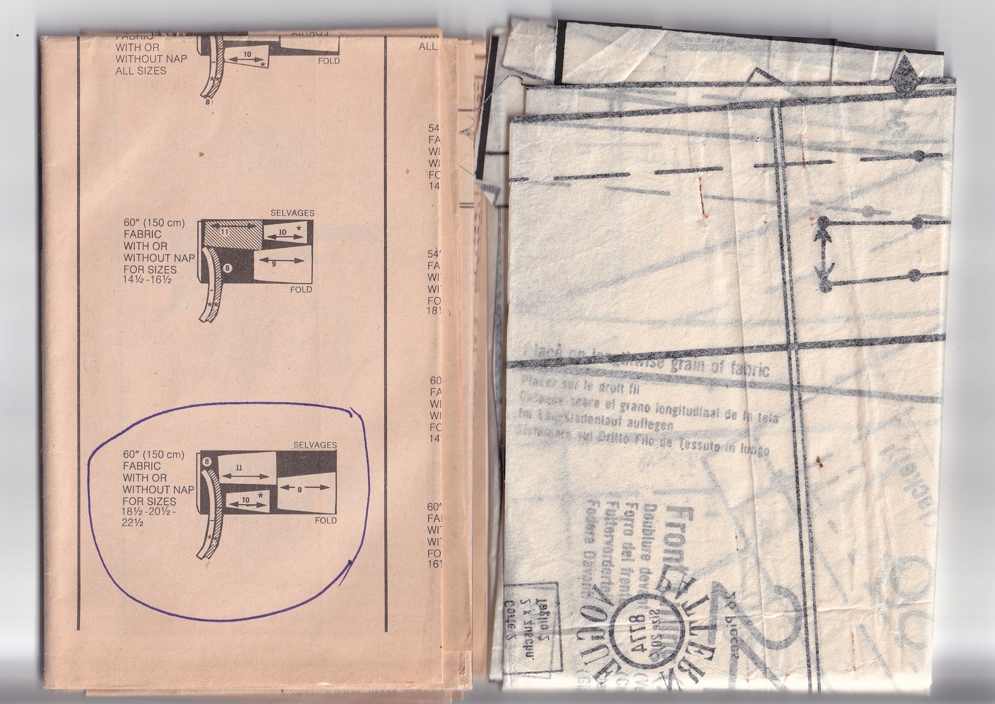 Pattern is cut and checked complete. Envelope has wear and tear.