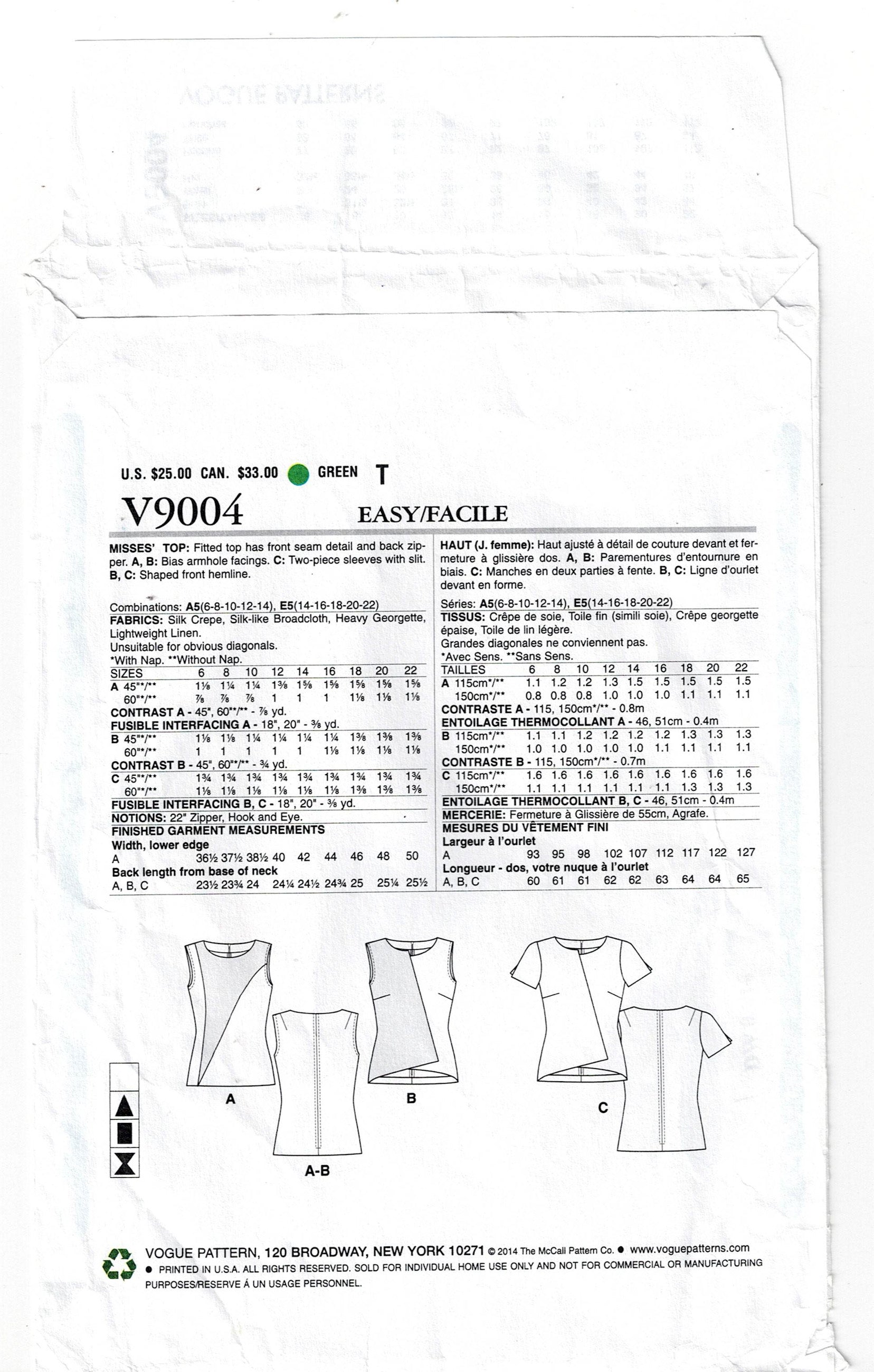 Vogue 9004 sewing pattern, dated 2014, now out of print.
