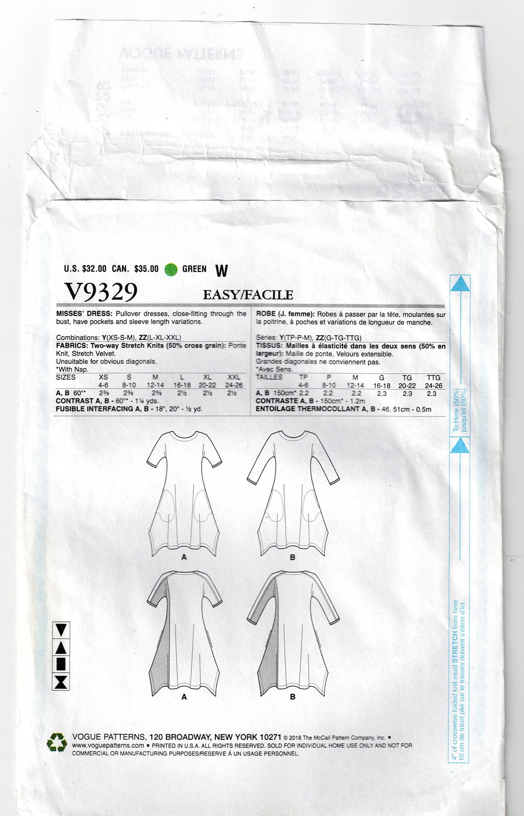 Vogue Designer Original 9329 MARCY TILTON Womens 2 Way Stretch Pullover Dress Out Of Print Sewing Pattern Size L - XXL UNCUT Factory Folded