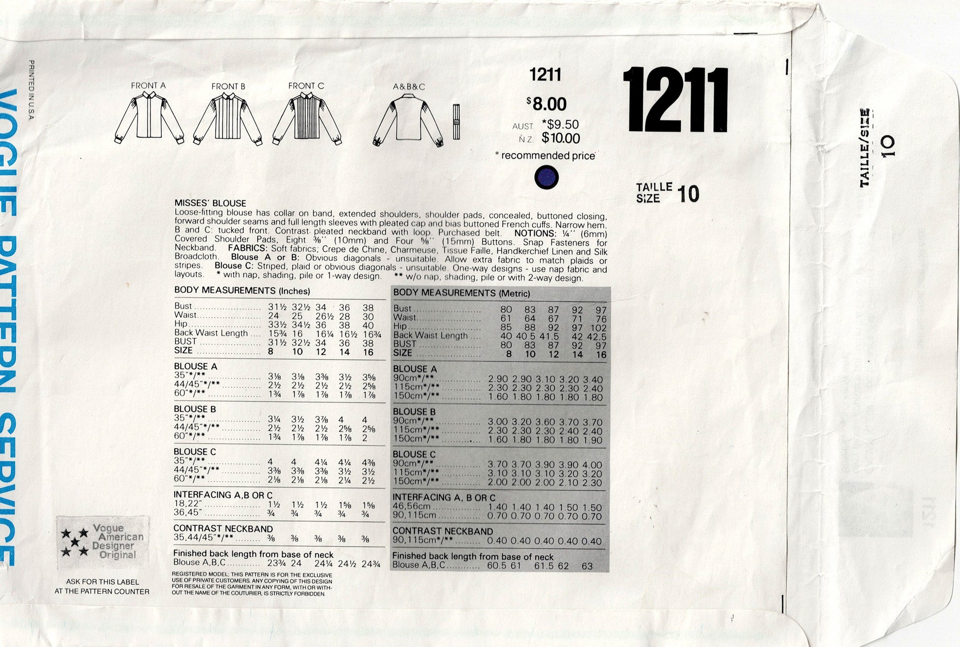 Vogue American Designer 1211 Vintage Sewing Pattern, dated 1980s.