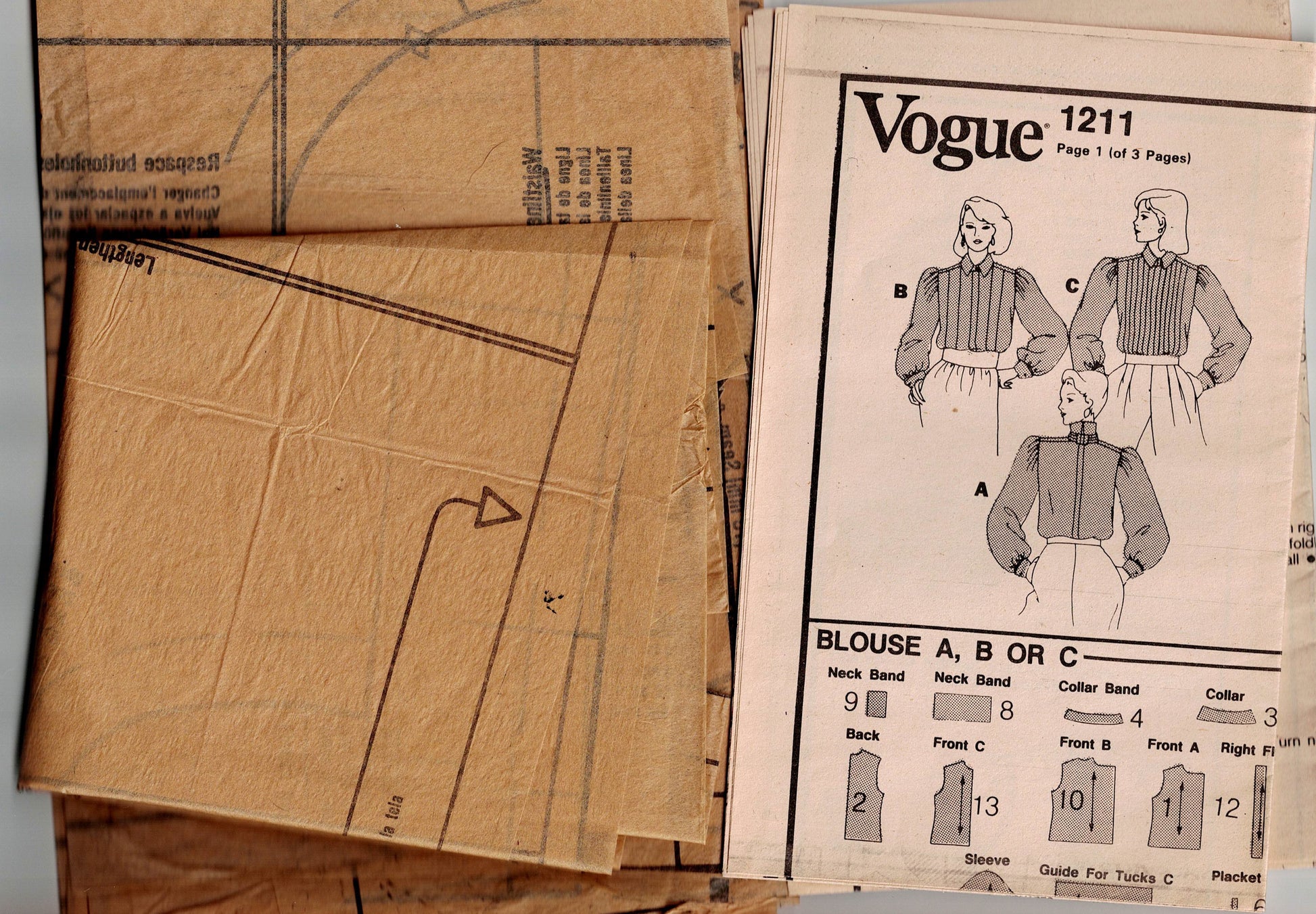 Vogue American Designer 1211 CALVIN KLEIN Womens Puffy Sleeved Blouse in 3 Styles 1980s Vintage Sewing Pattern Size 10 Bust 32.5 Inches