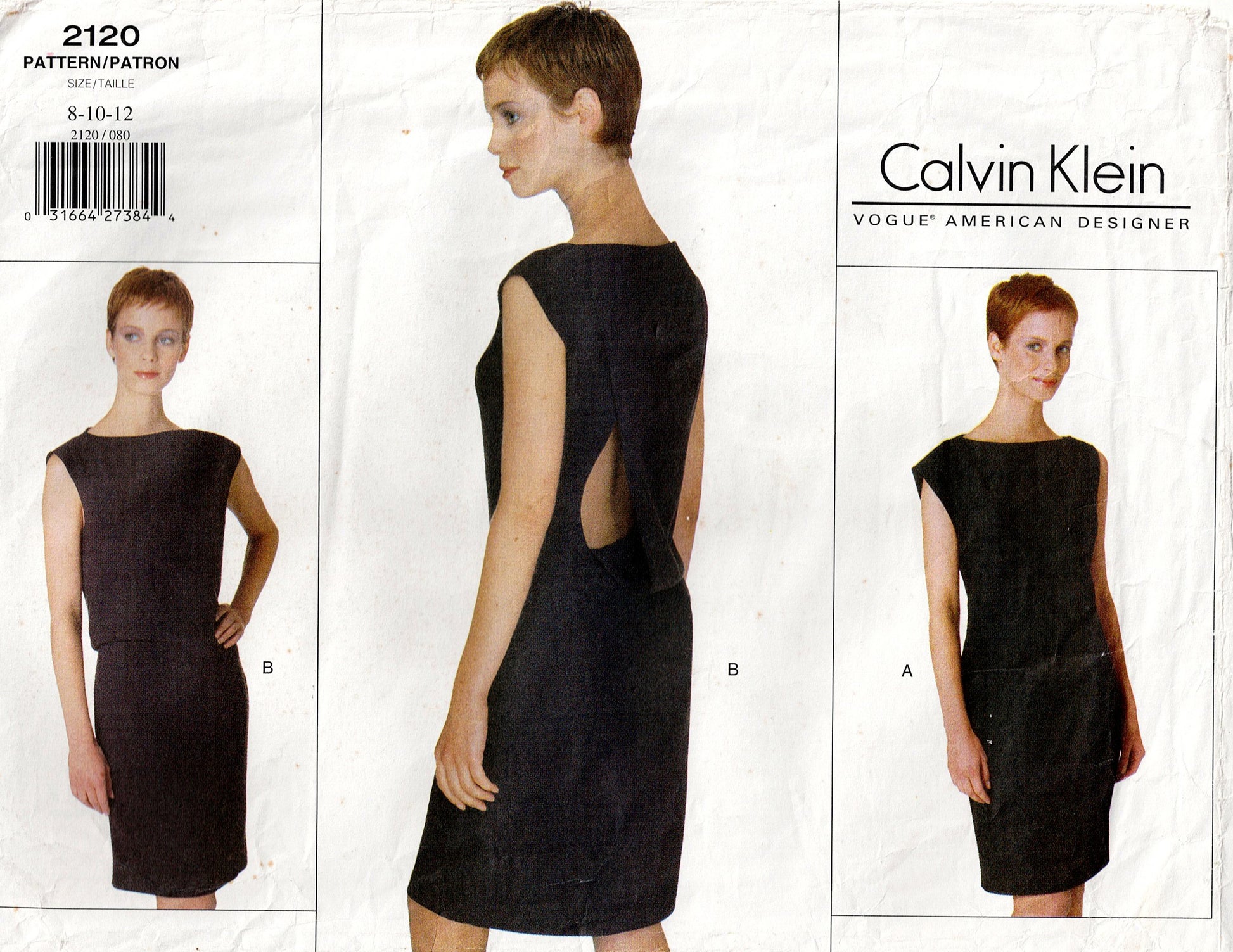 Vogue American Designer 2120 CALVIN KLEIN Womens Asymmetric Open Back Draped Evening Sheath Dress 1990s Vintage Sewing Pattern Size 8 - 12 UNCUT Factory Folded
