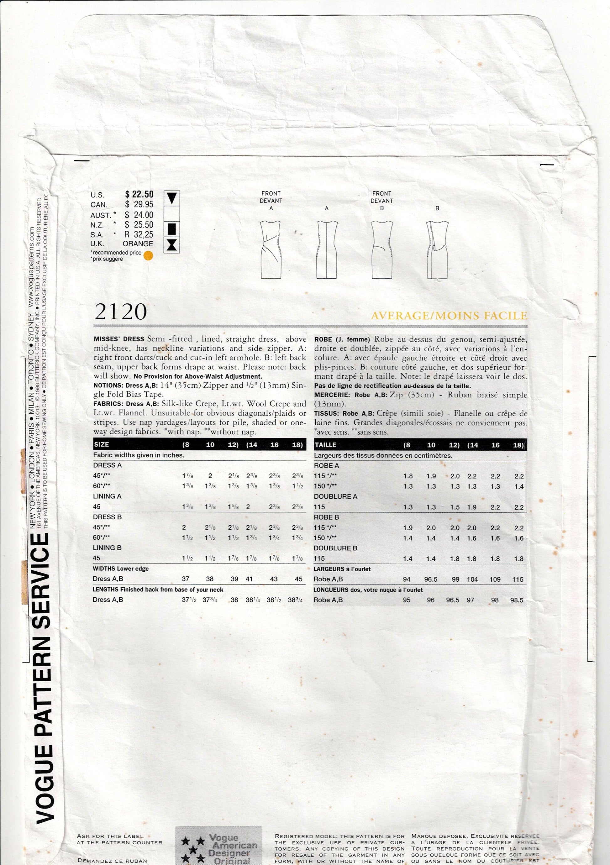 Vogue American Designer 2120 vintage sewing pattern, dated 1998.