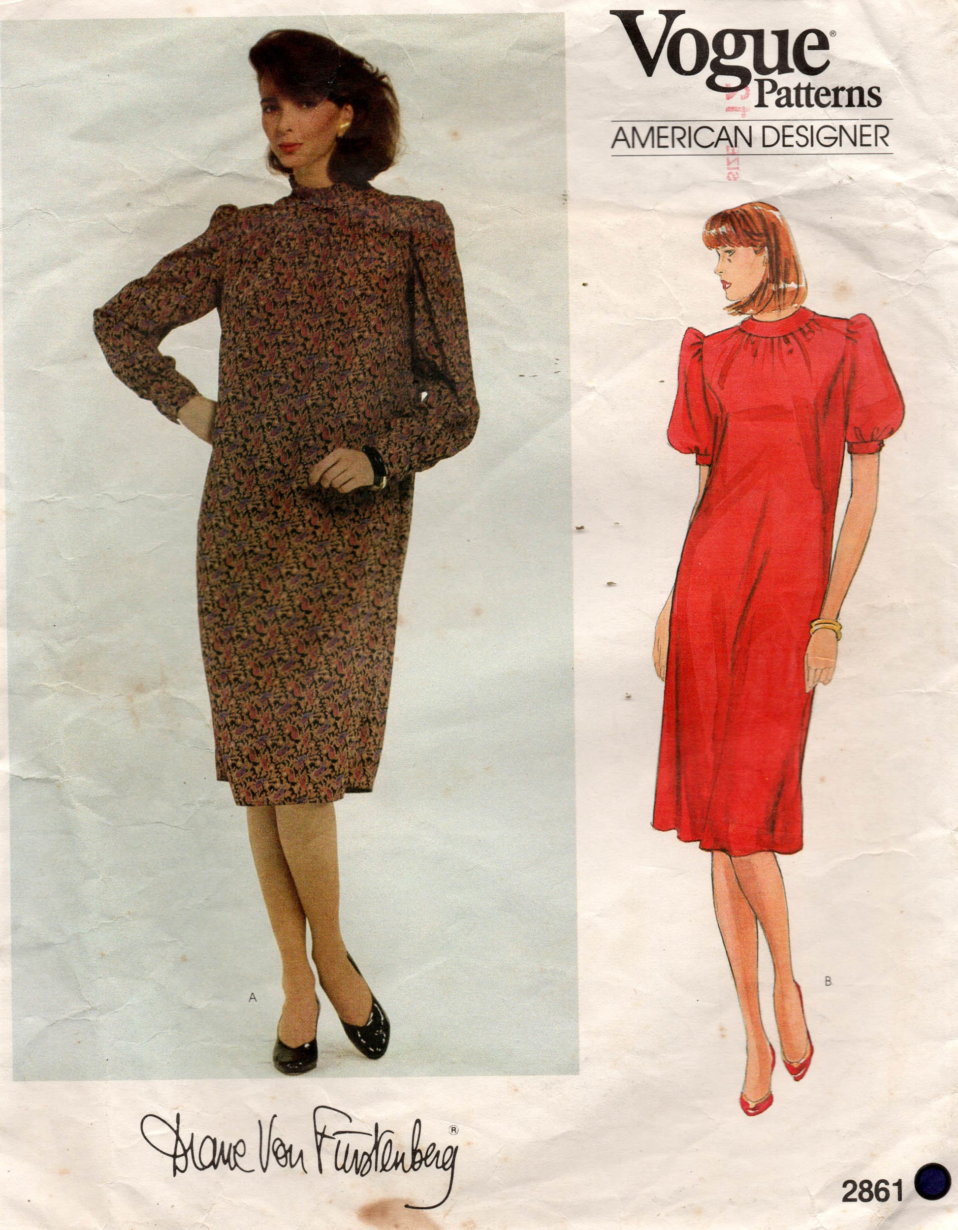 Vogue American Designer 2861 DIANE VON FURSTENBERG Womens Puffy Sleeved Straight Dress 1980s Vintage Sewing pattern Size 12 Bust 34 inches