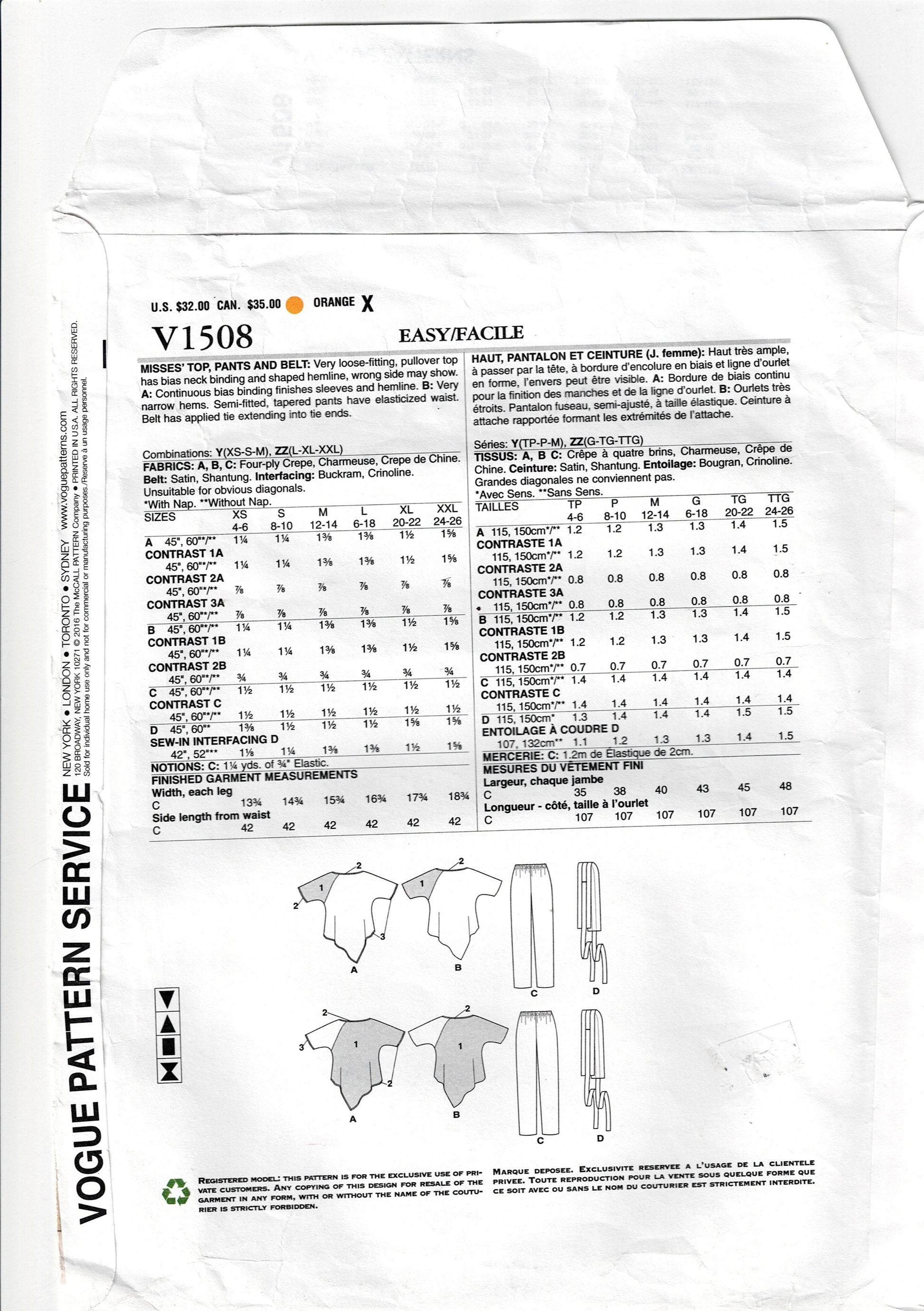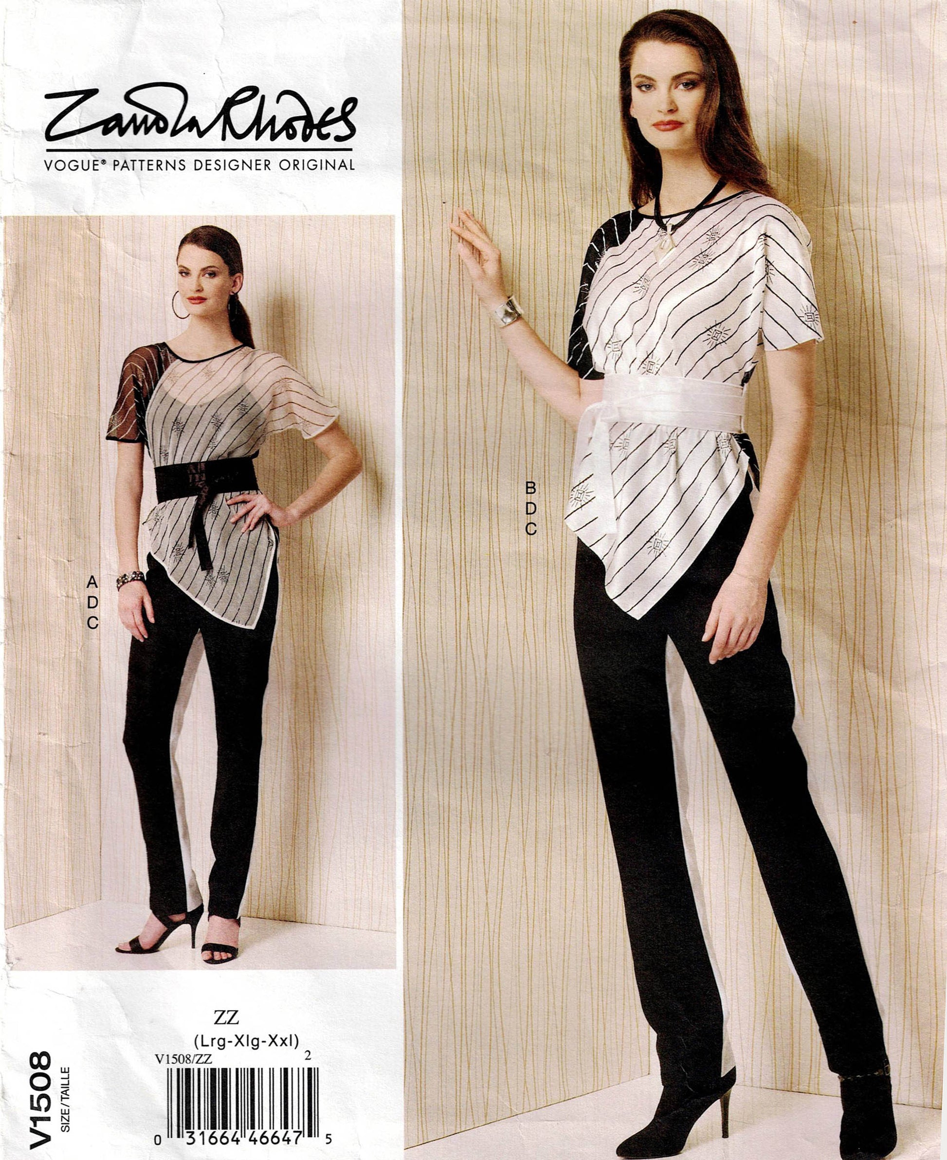 Vogue Designer Original 1508 ZANDRA RHODES Asymmetric Evening Top & Pants Out Of Print Sewing Pattern Sizes L - XL UNCUT Factory Folded