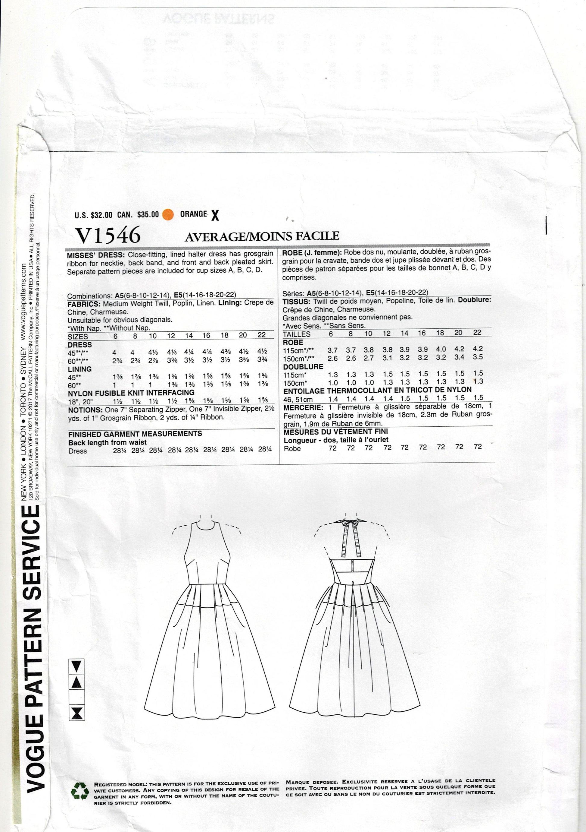 Vogue Designer Original 1546 REBECCA VALLANCE Womens Custom Fit Halter Full Skirt Dress Out Of Print Sewing Pattern Size 6 - 14 UNCUT Factory Folded