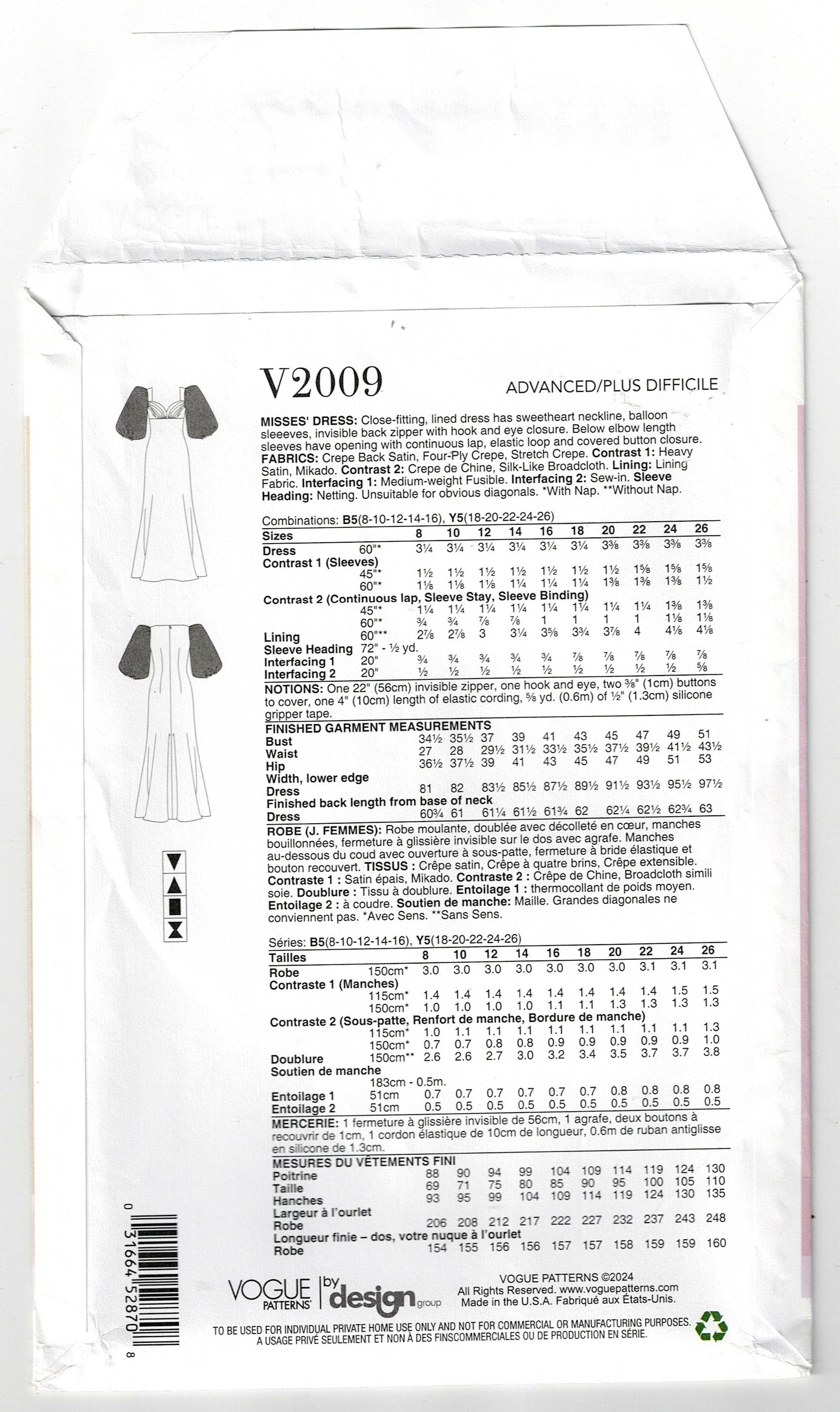 Vogue Designer Original V2009 sewing pattern, dated 2024.